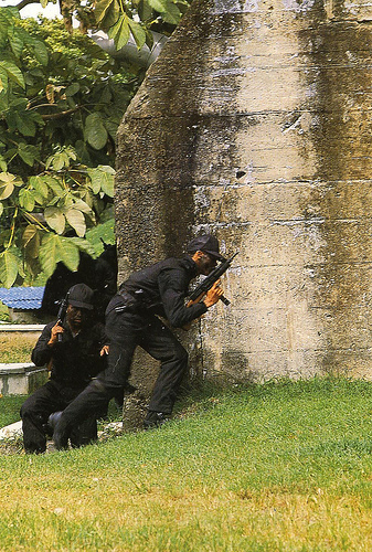 美国一些装备Uzi的SWAT,如果是精度射比赛,Uzi可能比不上MP5,但在CQB环境下,Uzi的精度足以满足战斗需要