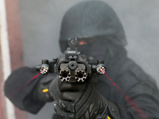 就算双管,也不需要安装两支激光指示器或两支战术灯,这样的对称布局地安装附件完全是为了让宣传照看起来“威猛”