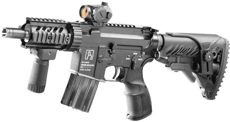 目前该公司的生产的枪支是以一系列的AR式武器为主,这一系列的产品就叫做“基利波”(Gilboa)。这个系列里有卡宾枪、短突击步枪、精确射击步枪和冲锋枪;除了5.56mm NATO口径外,还有7.62mm NATO口径、9×19mm口径和苏俄的7.62×39mm口径;这些AR式武器中,既有传统的气吹原理,也有采用了该公司自己研究和申请了专利的短行程导气活塞式系统。换句话说,后者就是银影公司紧随HK416掀起的潮流,而搞出自己的活塞式AR。