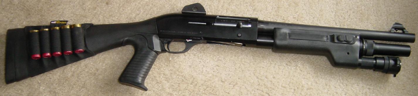 由于霰弹枪一打一大片,在近战中指向目标方向基本上就能命中,这个优点使得它很适合作为特警人员的室内近战武器。但霰弹枪一般都太长,反而又不太适合在狭窄环境下使用。因此伯奈利公司为M1超级90霰弹枪生产了一种缩短型,被称为M1 ENTRY霰弹枪,ENTRY在室内近战中是“突入”的意思。枪管长度缩短到356mm,枪管下方的弹仓也相应地缩短,因此弹仓容弹量减少1发。除了长度较短外,M1 ENTRY霰弹枪与M1超级90霰弹枪的差别不大,M1 ENTRY有缺口式和环形两种瞄具。
