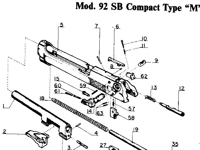 伯莱塔92SB Compact M型与92SB-C基本相同,但改用了单排的8发容量弹匣,以缩窄握把的握围,此枪的产量不大。