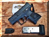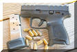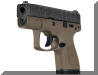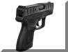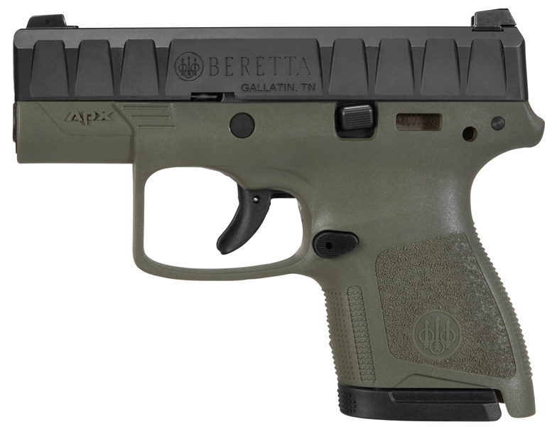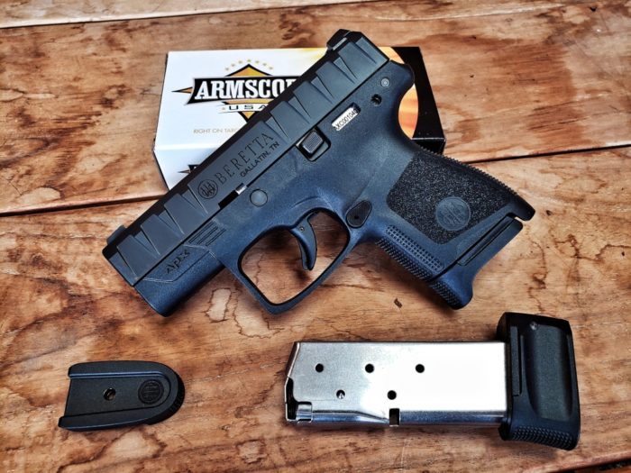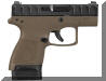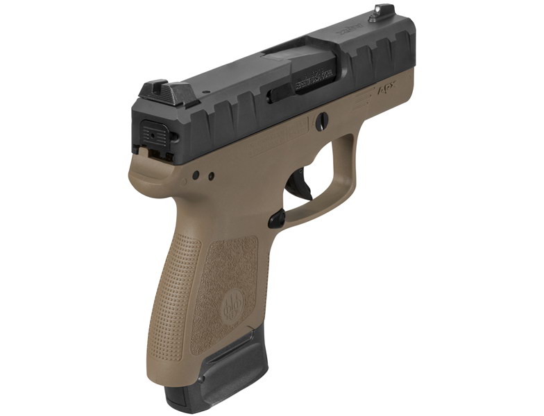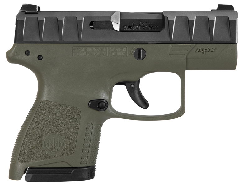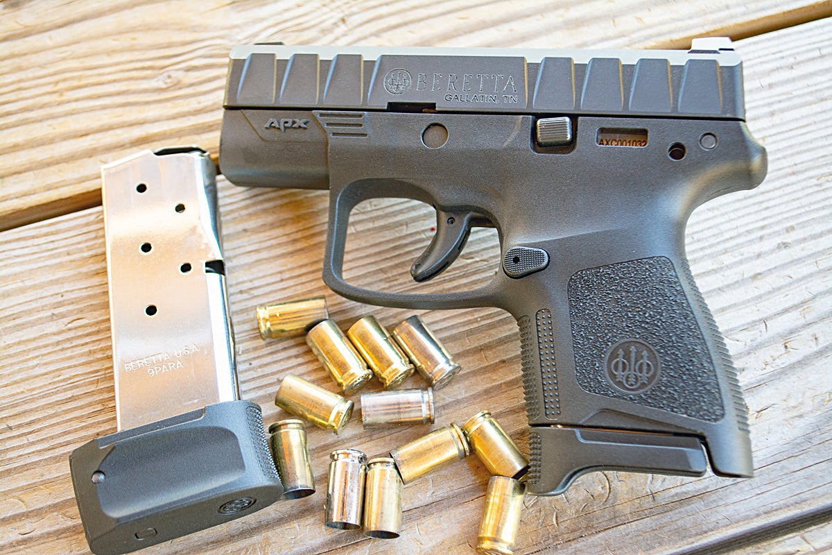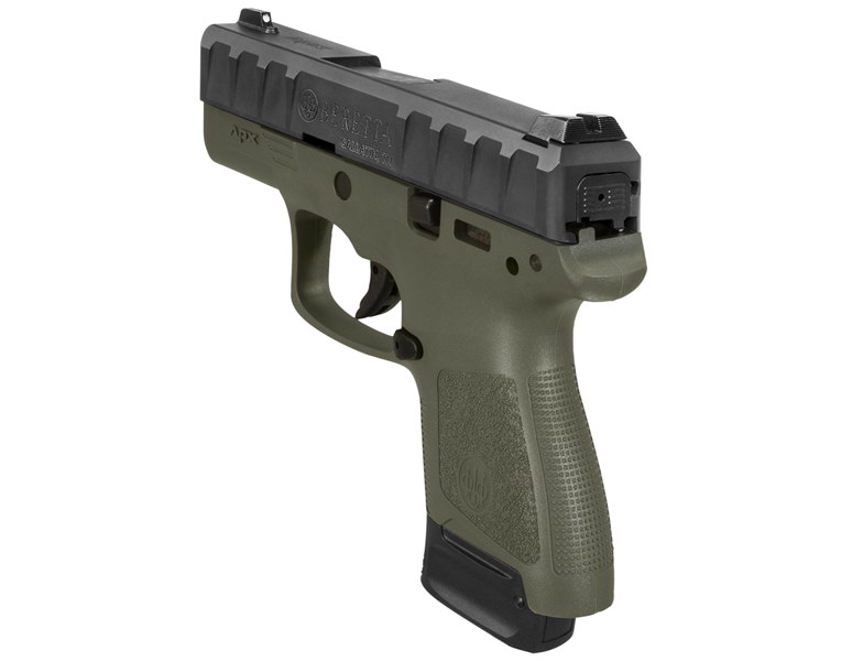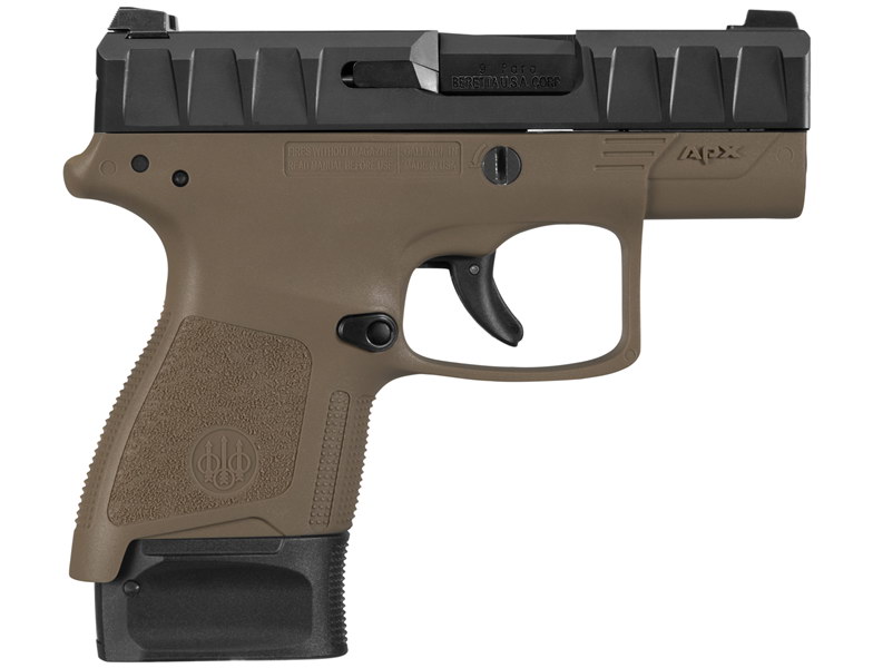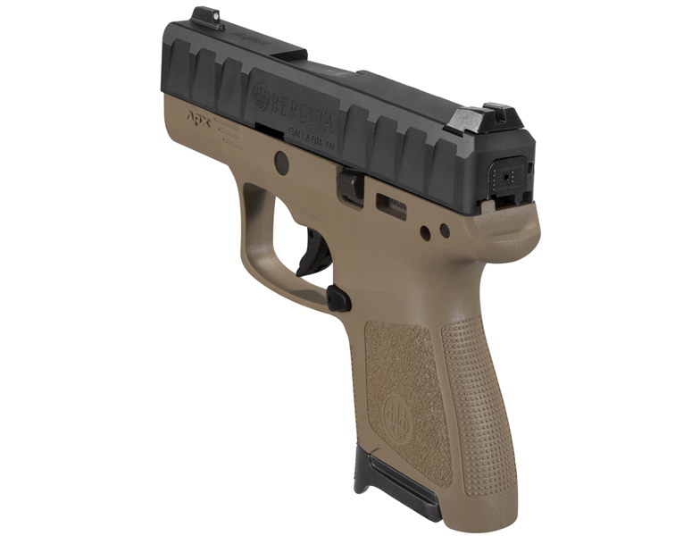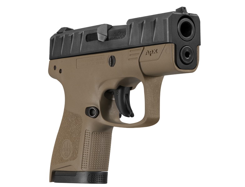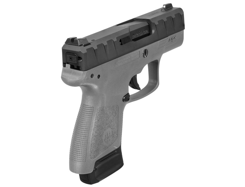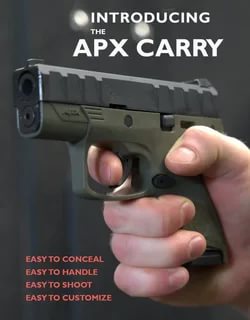 APX袖珍型手枪被命名为“携带型”(Carry),是APX中最小最轻的型事情,因为握把也比较薄,所以配两种不锈钢制的单排弹匣。一种是与握把高度相同的6发弹匣,另一种是加长型8发弹匣,无论6发还是8发弹匣都在伸出握把外的部位配上尾指托板,所以握持起来更舒适,但隐蔽性前者会稍好一些。APX袖珍型的底把配有黑色、灰色、沙色和军绿色(OG)4 种,用户可以购买整枪,也可以购买底把来自己更换。因为模块化的设计,所以更换底把很容易。但APX袖珍型与其他型号的底把、弹匣都不通用。另外,APX袖珍型的握把没有更换背板改变握围尺寸的功能。