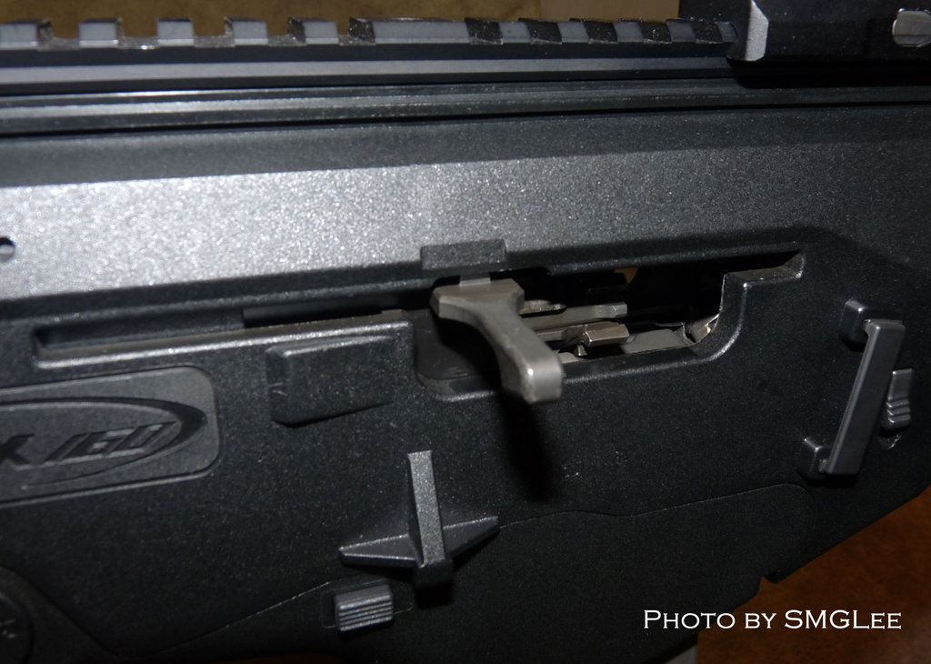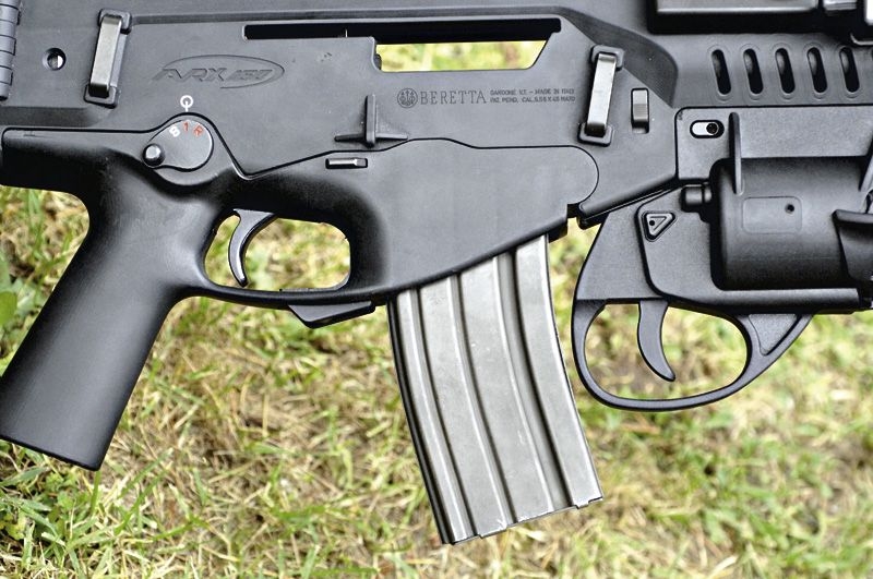ARX-160的扳机组和击发机构安装在下机匣内,各种操作开关都是方便左、右手操作的,例如枪上有三个弹匣解脱按钮,在扳机前上方的两侧各有一个,在扳机护圈底部也有一个,不同操作习惯的射手都可以方便操作。枪机的空仓挂机释放按钮位于扳机前方,在护圈内侧,可以用扣扳机的食指轻松操作。但有射手认为该枪的扳机扣力稍为重了一些,如果有扣力较轻的扳机组供用户选择就更好了。另外手枪形握把底部是储物仓。