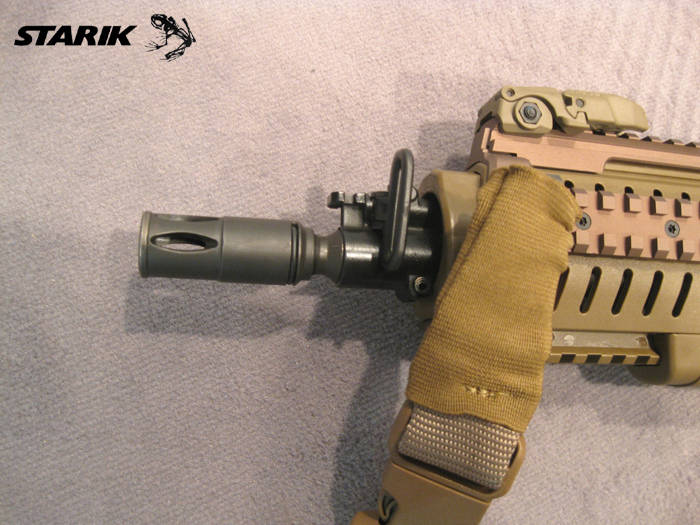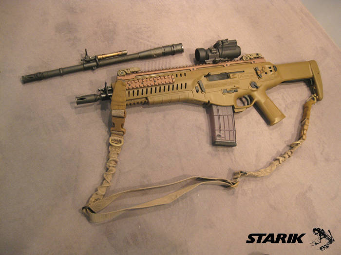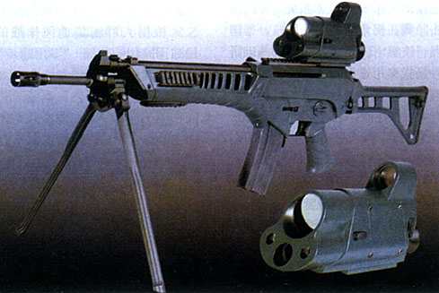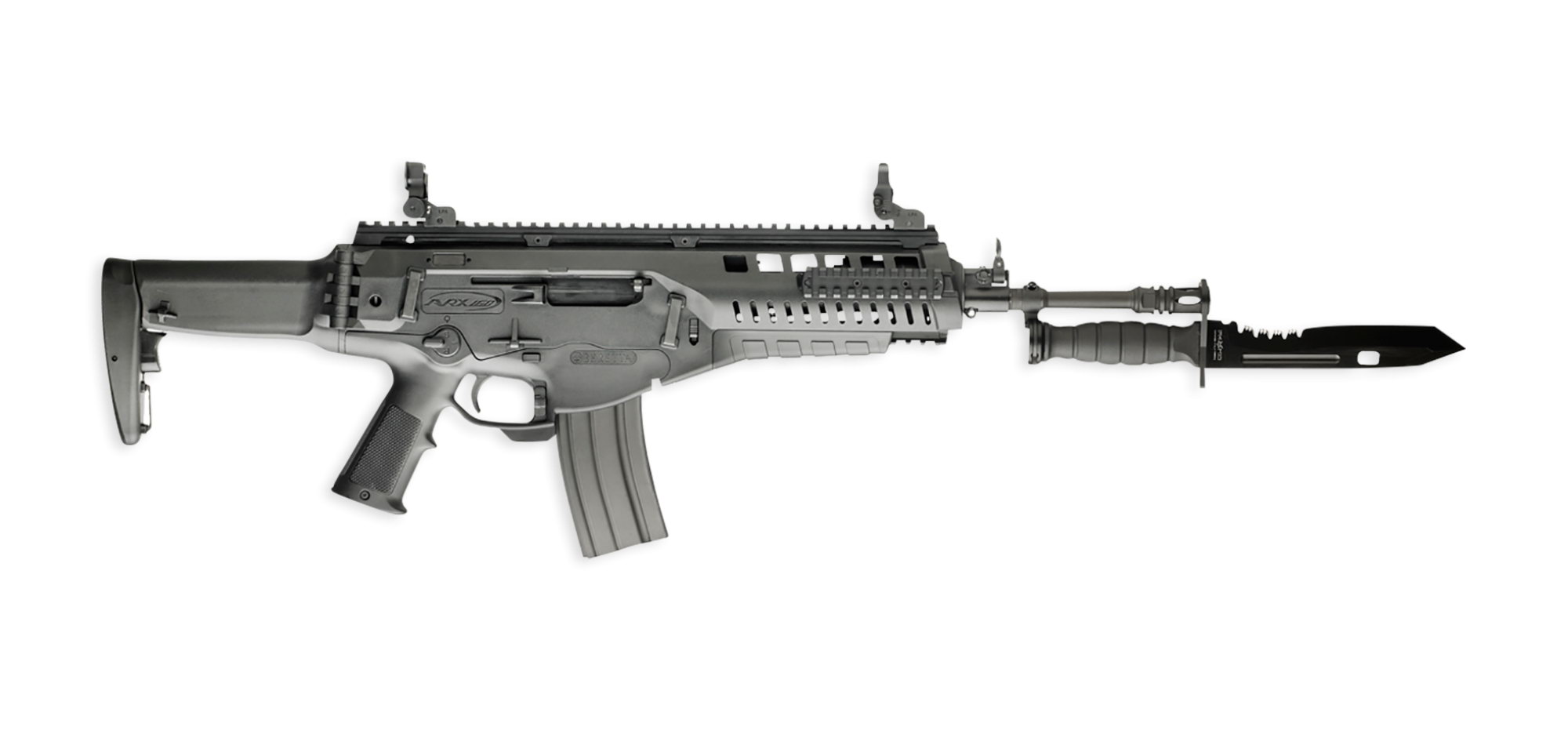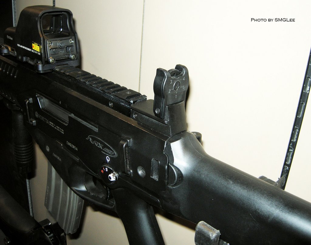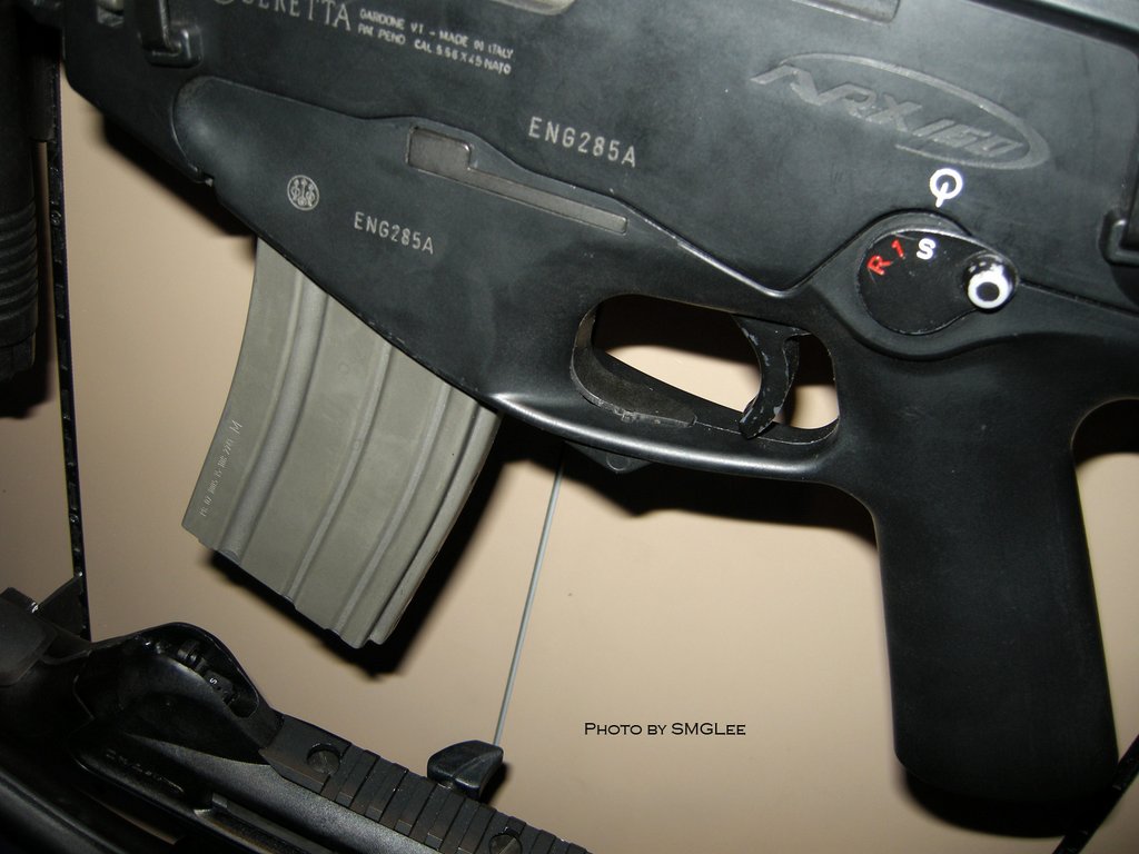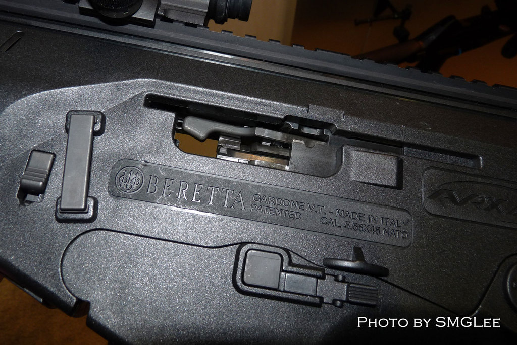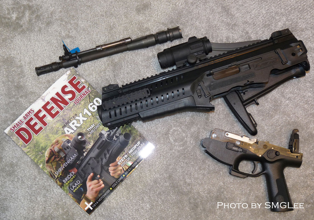 另外,基本型步枪的枪管上有刺刀卡笋,不过刺刀是装在枪管上方而不是下方,这样的设计是为了避免和榴弹发射器互相妨碍。2013年推出的轻机枪型ARX-160A3的枪管并没有采用加厚的设计,和基本型没什么区别,但把刺刀卡笋改到枪管下方,大概是考虑到这个型号主要安装两脚架使用,不需要安装榴弹发射器。
