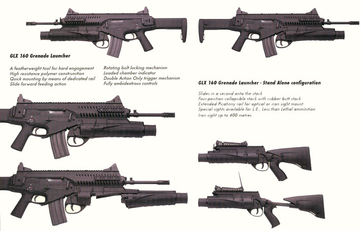 ARX-160配套的下挂式榴弹发射器的定型为GLX-140。GLX-140榴弹发射器配有整合火控系统的瞄准装置,这套火控系统由GALILEO AVIONICA研制,不过也可以使用普通的立式表尺瞄具。GLX-140也可以拆卸下来装上枪托单独使用。