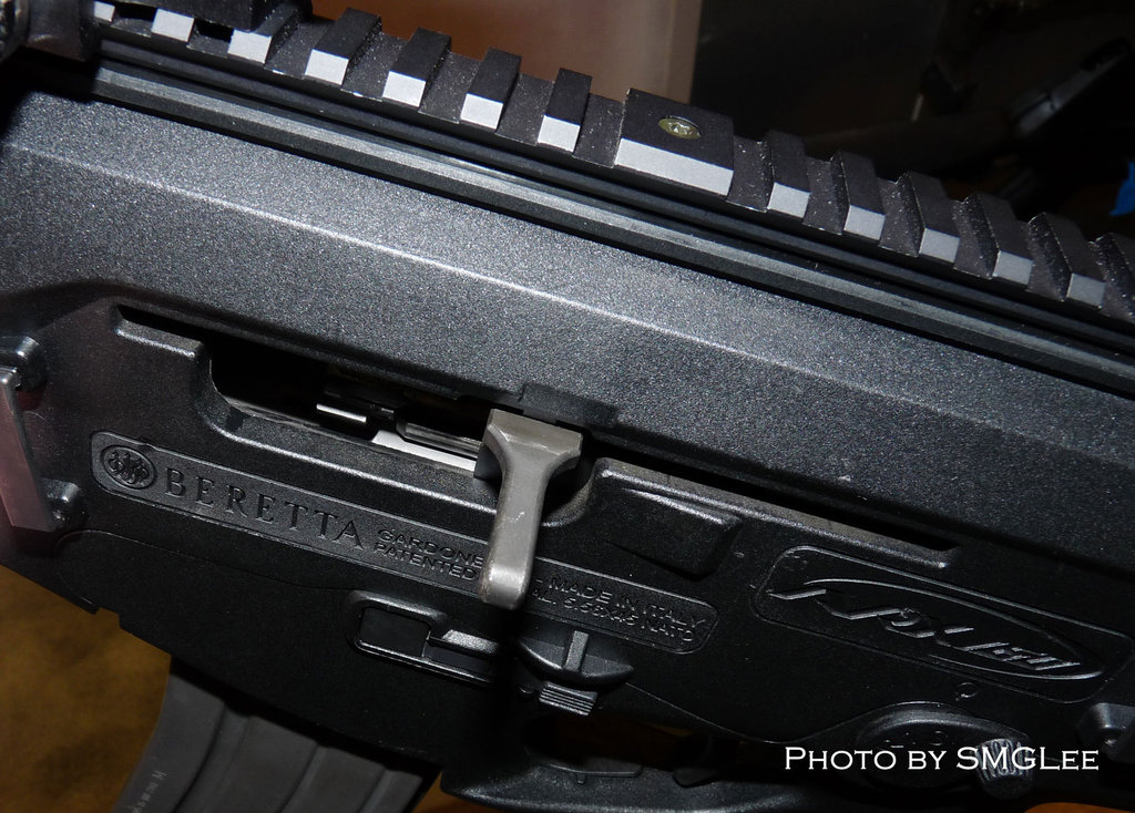 为了便于左右手都能互换操作,ARX-160不仅仅是抛壳方向可以随意更换,其拉机柄也可以随意更换在左侧或右侧。拉机柄的尺寸比较小,这受到一些手掌较大的用户的抱怨,所以后来伯莱塔公司推出了一个称为“枪机帽”的小附件,其实就是一个可以套在拉机柄上的橡胶套,使拉机柄的尺寸变大一些,也不容易打滑。