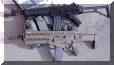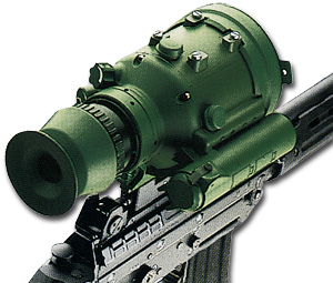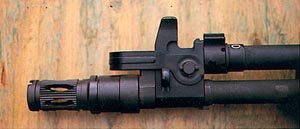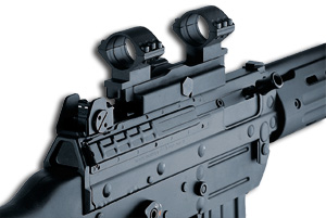 可选的瞄准镜轨座,用于安装其他类型的附件,如AIMPOINT的反射式瞄准镜(左)或“猎户星座”夜视装置(右)