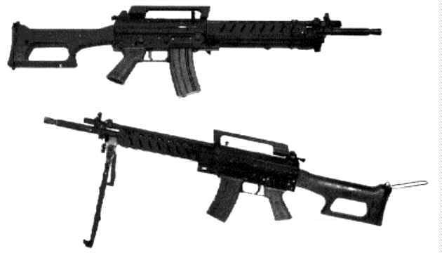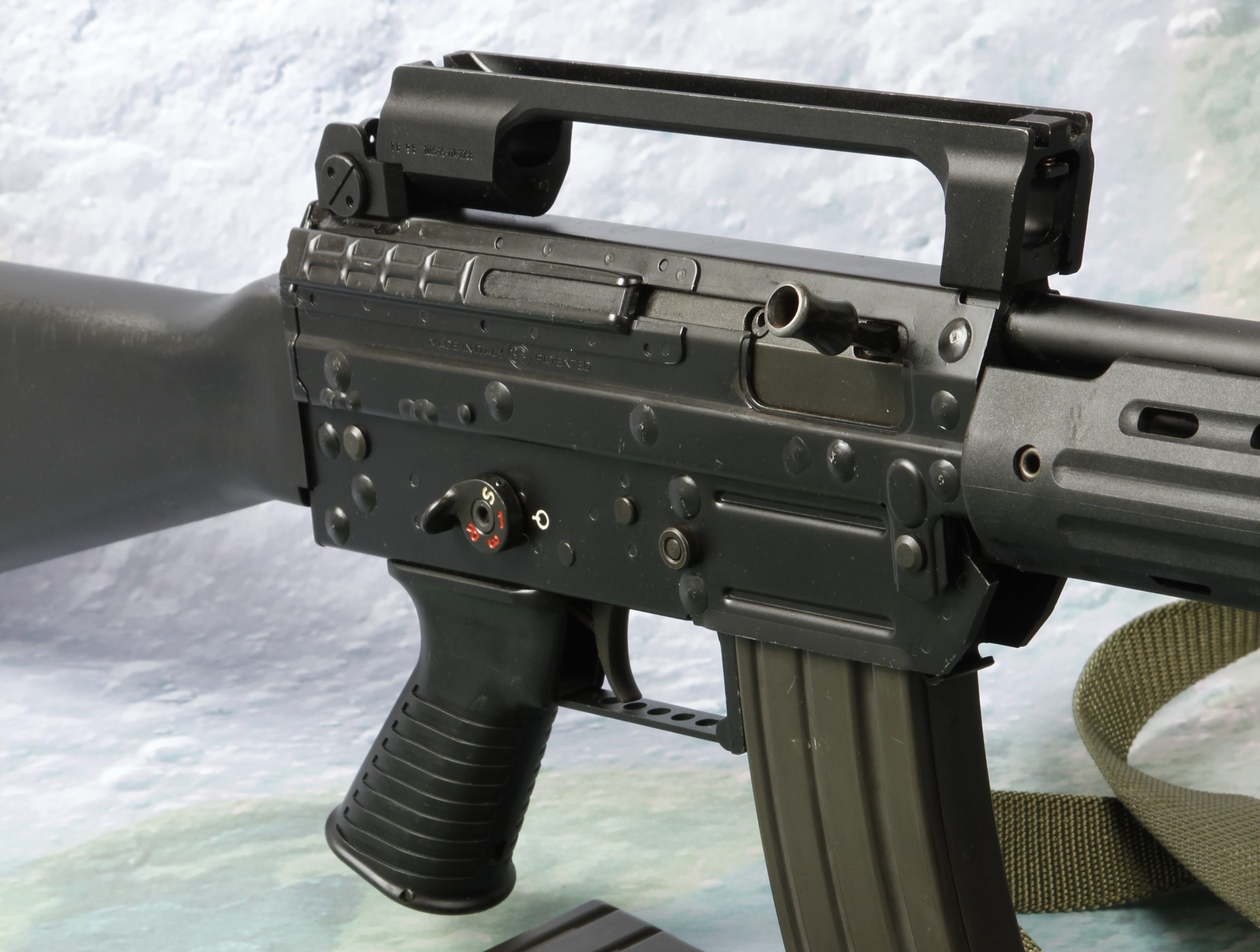 AR-70/90的机匣也由钢板冲压成上下两部分,并通过前后两根销连接。在维护和野战分解时把后面的销用弹尖顶出,并以前面的销为铀把机匣翻开(如果需要,前面的销也可以拆出)。但AR-70/223的上机匣是矩形截面,枪机导轨在机匣上冲压出来,这个设计在试验中被发现强度不足,因此AR-70/90改为梯形截面的上机匣,而把另外生产的钢制枪机导轨焊接在机匣壁上。 AR-70/223系列的击发机构只有单发射击和连发射击两种模式,而在AR-70/90系列的上则有单发、3发点射和连发三种模式,不过用户也可以选择只有单发和3发点射的击发机构,或只有单发和连发射击的机构。在AR-70/90系列步枪的机匣两侧都有保险/快慢机柄,而在AR-70/223系列步枪上只在机匣右侧。扳机护圈的下部可折叠,便于戴手套射击。 |