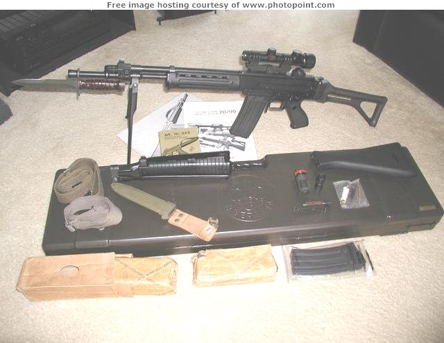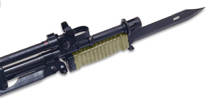 AR-70/90步枪的附件非常多,包括刺刀、可拆卸的轻合金两脚架、空包弹助退器、提把等等。