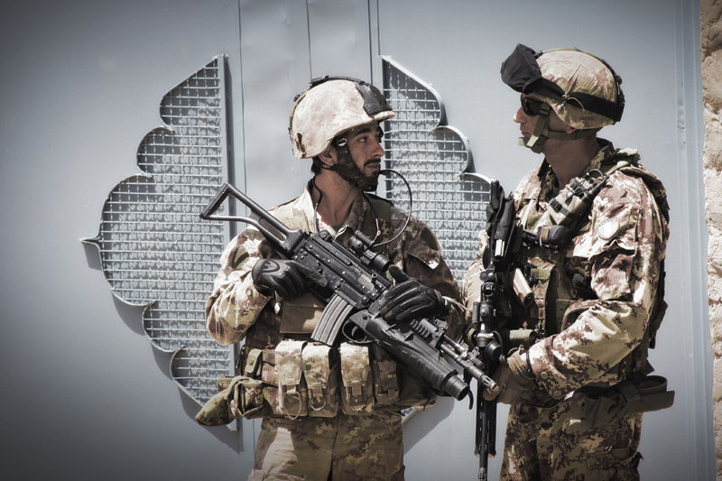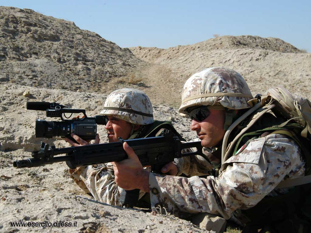 在阿富汗的意大利士兵,他在SCP-70/90下面挂下了为ARX-160研制的GLX-140榴弹发射器