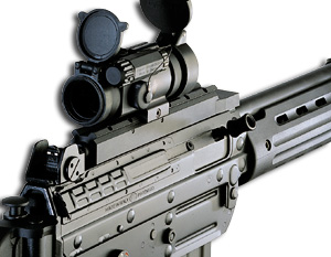 机匣顶安装了皮卡汀尼导轨,并安装ACOG或Aimpoint等瞄准镜的SC-70/90