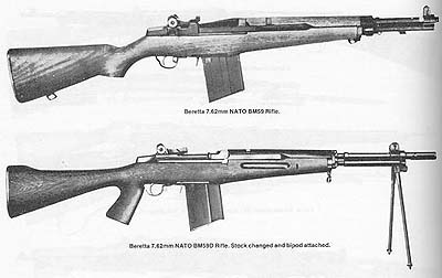 BM59在1959年被意大利军队采用,印度尼西亚和摩洛哥也有装备,后来还特许生产BM59。要注意的是最早的BM59是直接使用了一些M1伽兰德的零件来制造,甚至包括重造弹膛的枪管。在1980年代后期内,意大利军队使用的BM59被伯莱塔AR70/90突击步枪所代替。目前意大利已经不再生产BM59,但意大利陆军仍有少量装备。