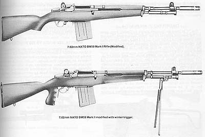 BM59 Mark Ⅱ,与Mark Ⅰ基本相同,但木质枪托采用手枪形握把,使全自动射击时更容易控制,并备有两脚架。