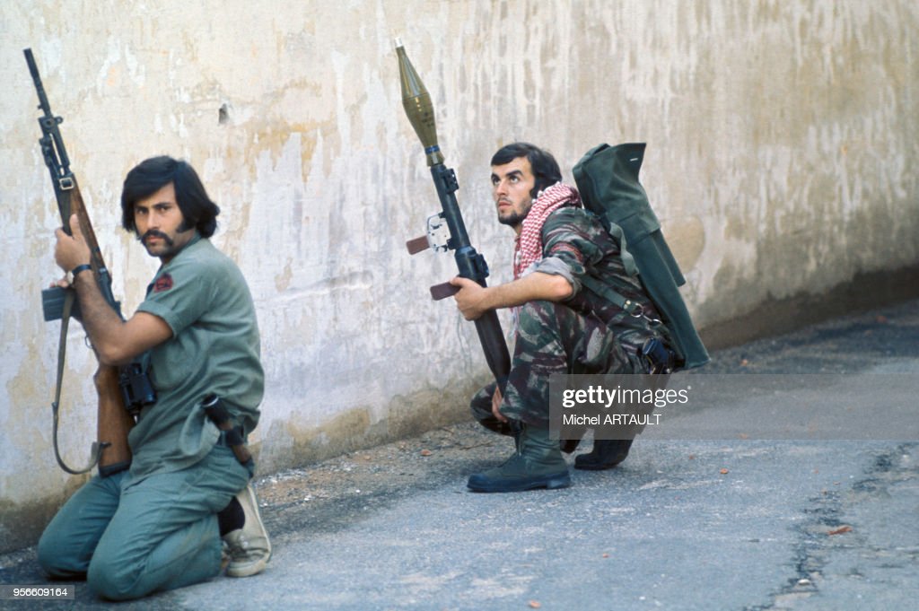 1975年11月在黎巴嫩贝鲁特的巴勒斯坦民兵,前面的人手上是BM59