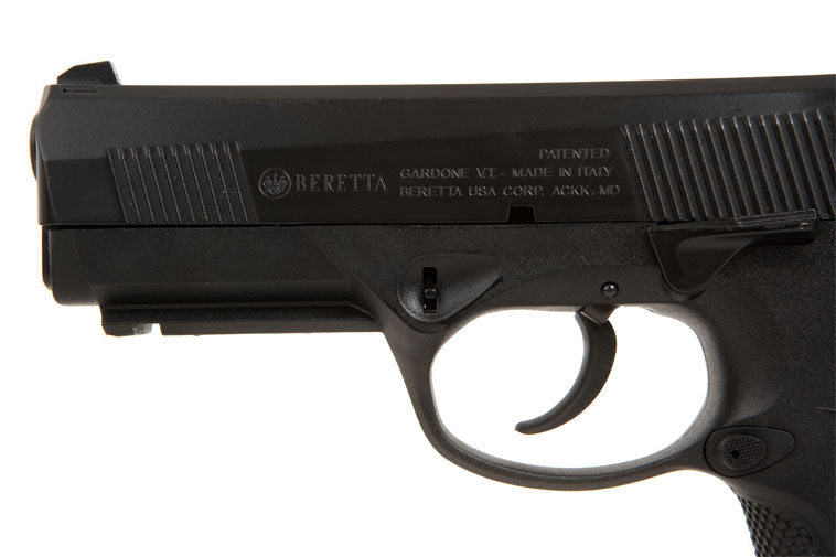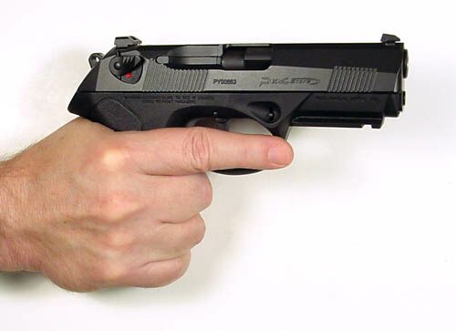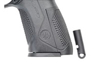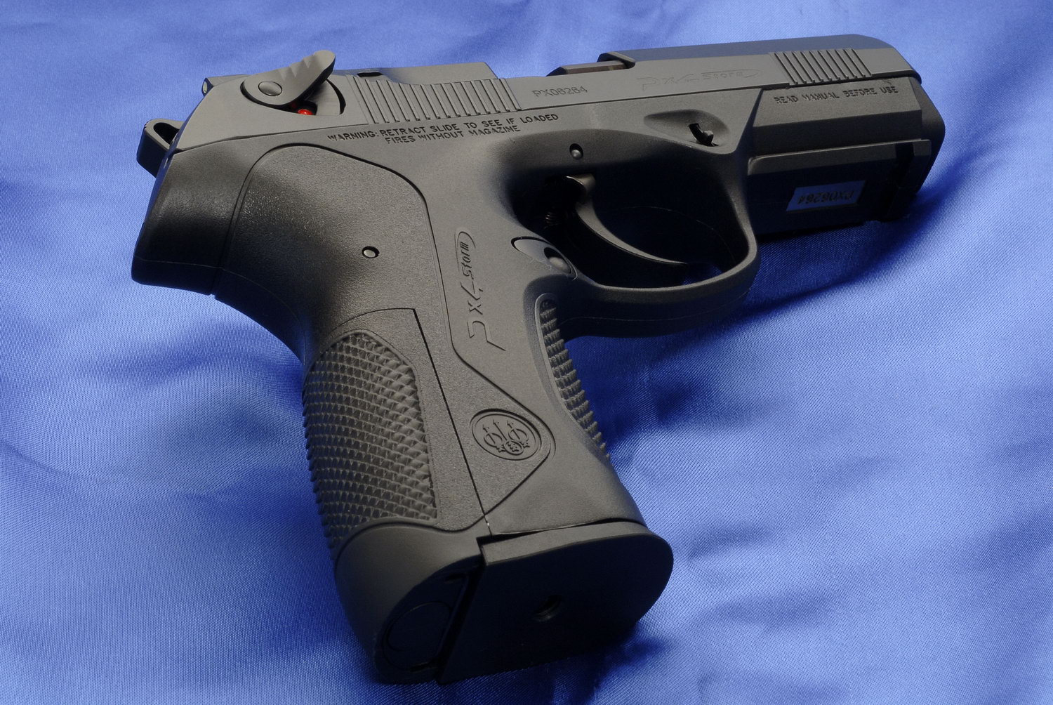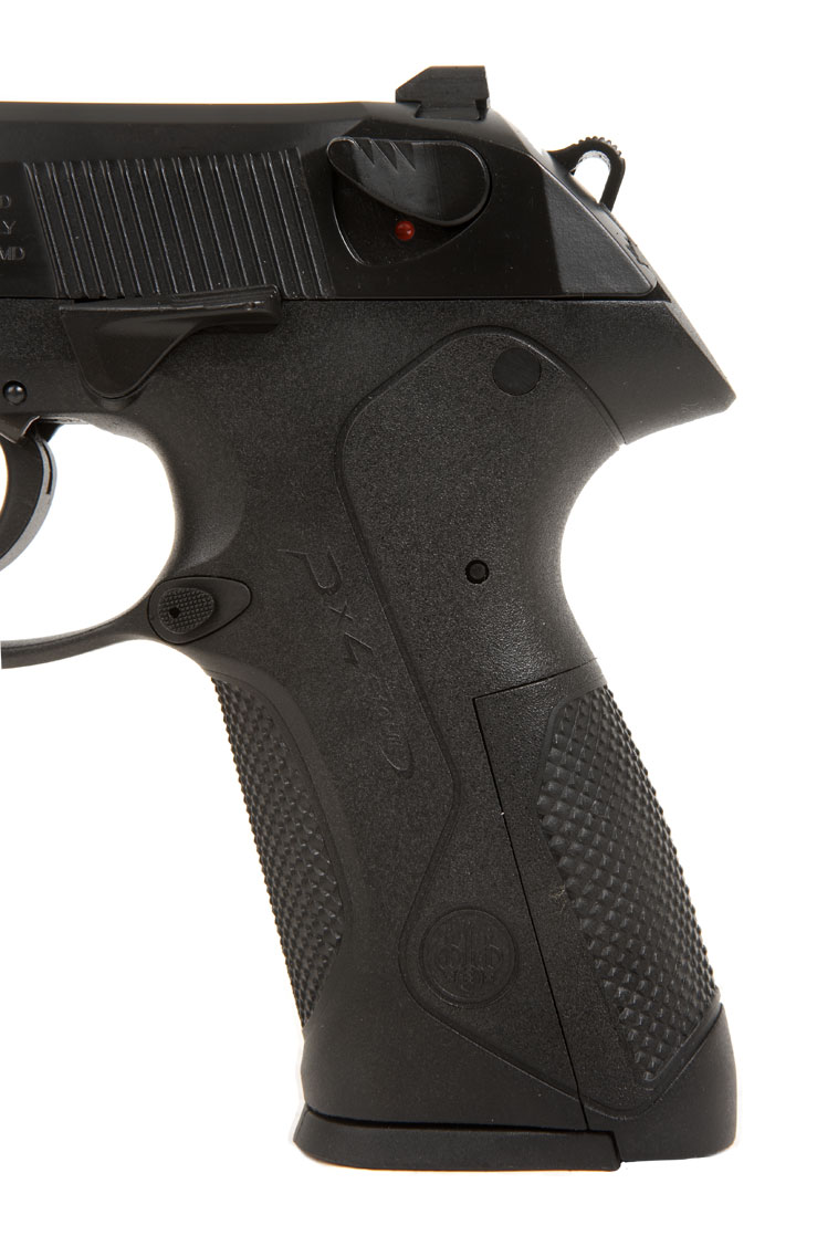 为适应不同射手的手掌大小,Px4手枪的塑料握把背板能够更换,每把枪在出售时便配套有三种尺寸不同的握把背板。合适的握把角使该枪比起92/96系列有较好的指向性。底把上有标准的皮卡汀尼附件导轨。弹匣容量为17发9mm弹或14发.40 S&W弹或9至10发.45 ACP。如果选用增大容弹量的弹匣底板(可从伯莱塔公司购买),容弹量能增加到20发9mm或17发.40 S&W。弹匣卡笋可以左右置换,而且有不同尺寸的弹匣释放按钮供射手选择和更换。与92/96系列中的98型手枪一样,伯莱塔公司也为Px4研制了专门针对意大利的民用市场的9×21mm IMI口径的型号,弹匣容量为15发。