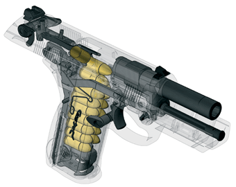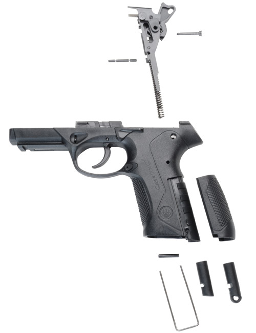 Px4“风暴”手枪采用模块化的板机系统,射手可以很容易地更换击发机组。一共有四种型号:
