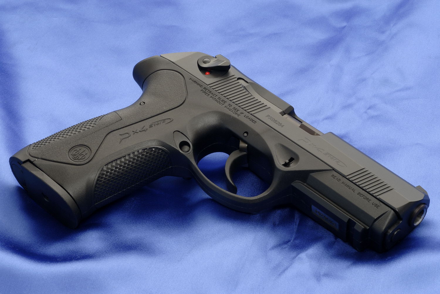 技术上,Px4手枪是伯莱塔8000型“美洲狮”系列手枪的进一步发展,但按照时下流行的手枪潮流,采用聚合物材料和有适应性的握把设计。Px4手枪使用与“美洲狮”系列相同的后坐原理,回转式枪管的后膛闭锁。