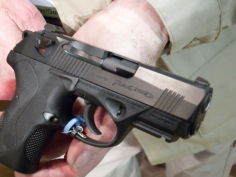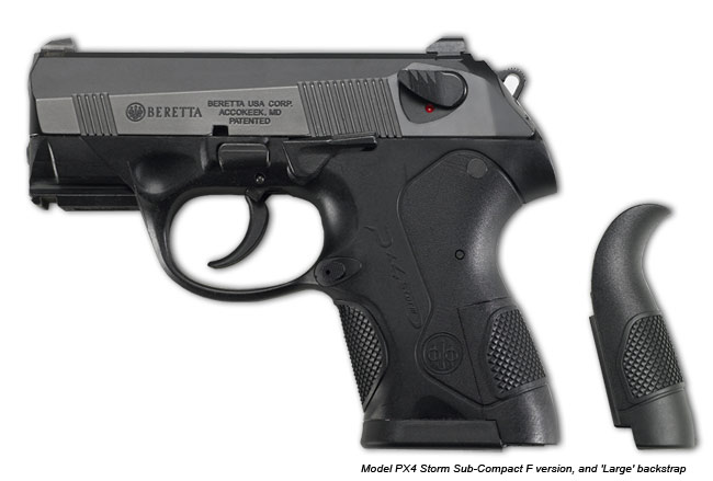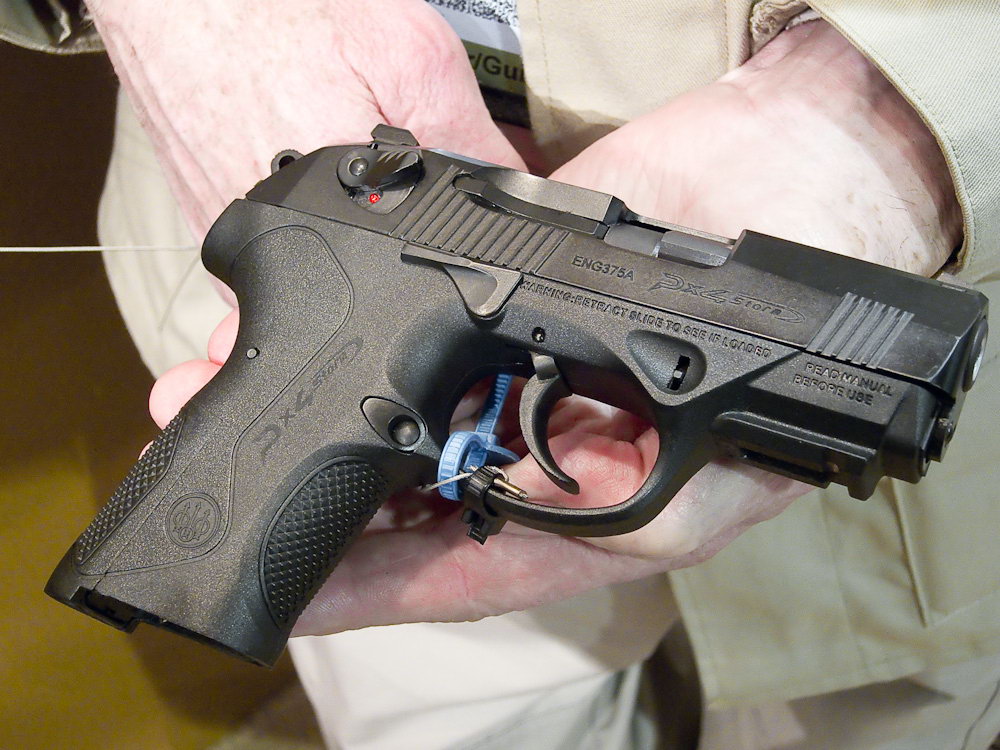 Px4系列最新的型号是紧凑型(Px4 Storm Sub-Compact),目前只有9mm和.40两种口径。除了尺寸较小外,它的可更换握把背板也只有2种尺寸,弹匣容量为13发9mm或10发.40。在外形上Px4紧凑型虽然是标准型的缩短,操作上也基本相同,但实际上由于枪管和套筒都缩短了,不能使用原来的闭锁系统,因此Px4紧凑型改为弹膛部与抛壳口闭锁的勃朗宁式闭锁。