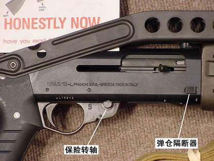 SPAS-12上有一个弹仓隔断器,可以切断从弹仓供弹,这样射手就可以往弹膛里手动装填一发特种弹而不会从弹仓进弹。例如在战斗中射手原本在弹仓中装满了鹿弹,但突然需要发射催泪弹或破门弹,或向远距离目标射击独头弹时,这样只要按下这个开关,就可以直接往弹膛里更换弹种,而发射完这发特种弹后,可立即继续从弹仓中补充鹿弹向敌人射击。