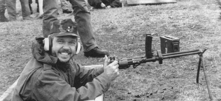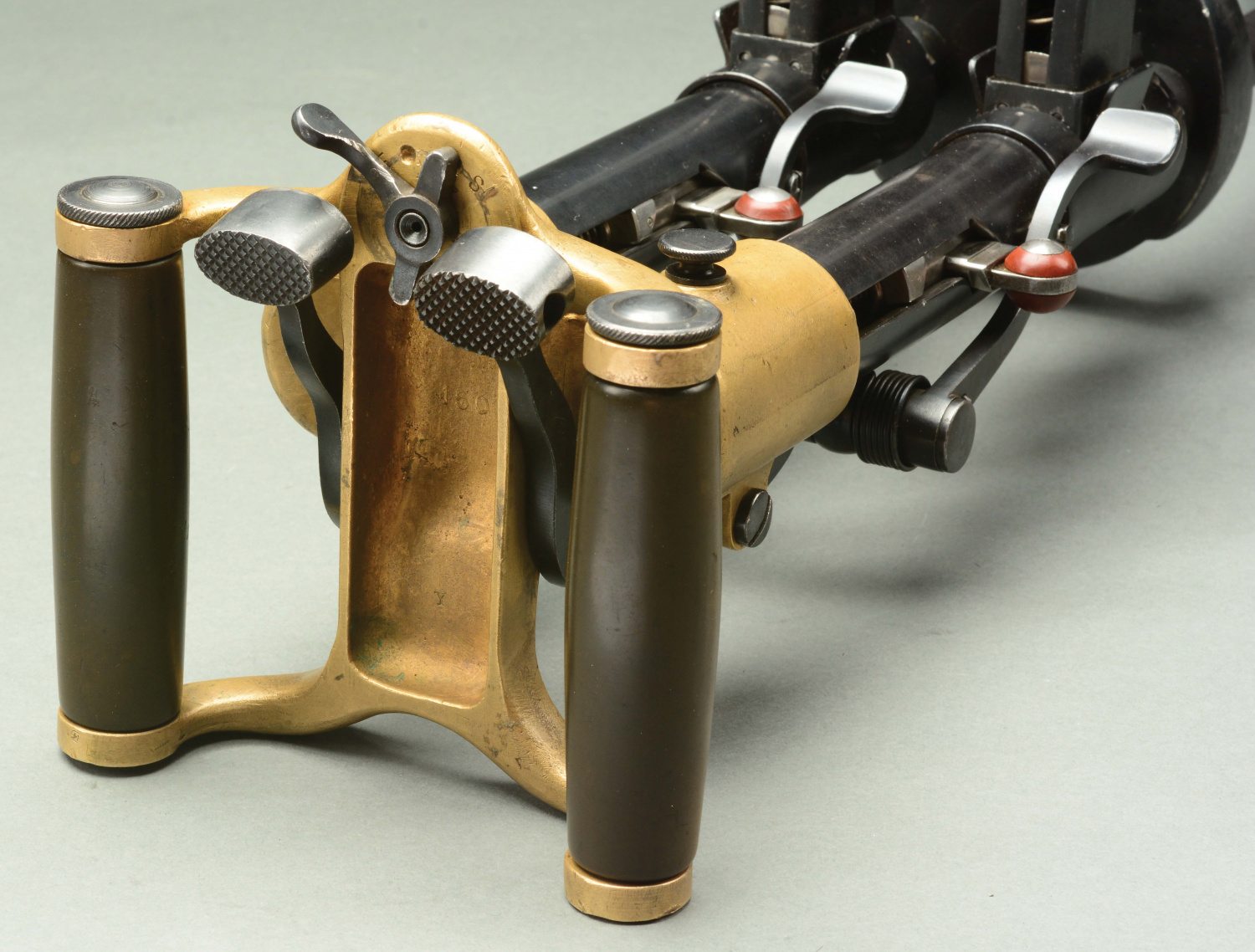 然而当加上一个成年人作为参照时,你会发现这挺“轻机枪”确实小得不像一挺机枪,但这个唯一可用的射击姿势却也无法与现在我们所认知的“冲锋枪”挂上钩,果真是“机枪的儿子”(Sub-Machinagun)。