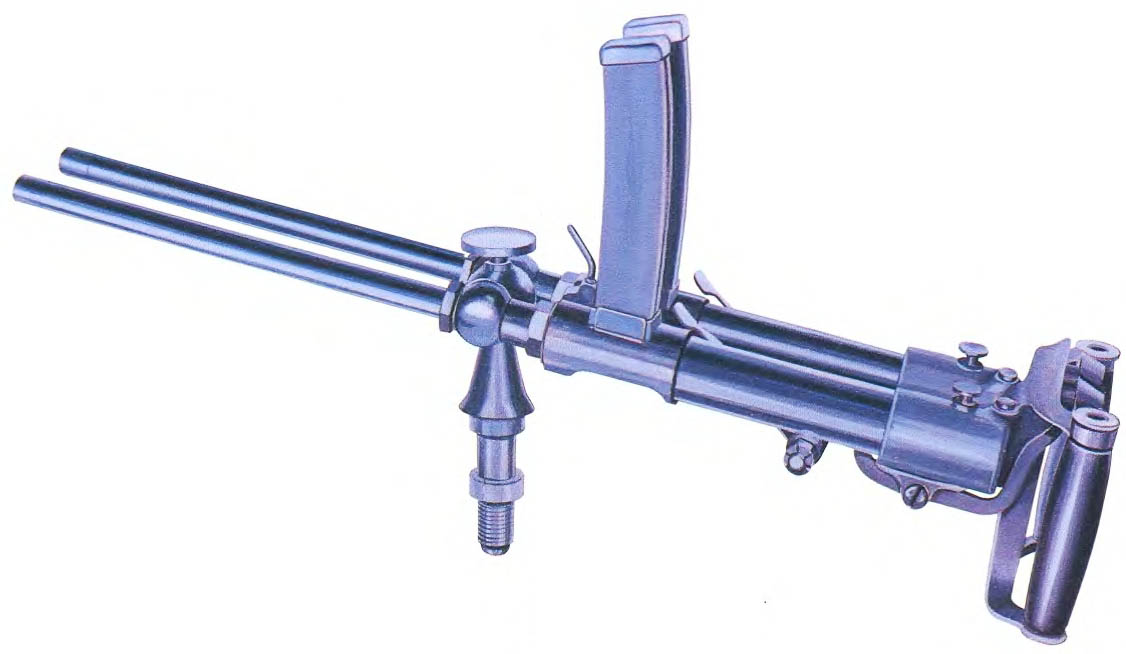 瑞士Bern机枪的设计与维勒·帕洛沙很相似,也采用并联枪管,但采用不同的动作机构,而且有握把和枪托可以抵肩无依托射击。