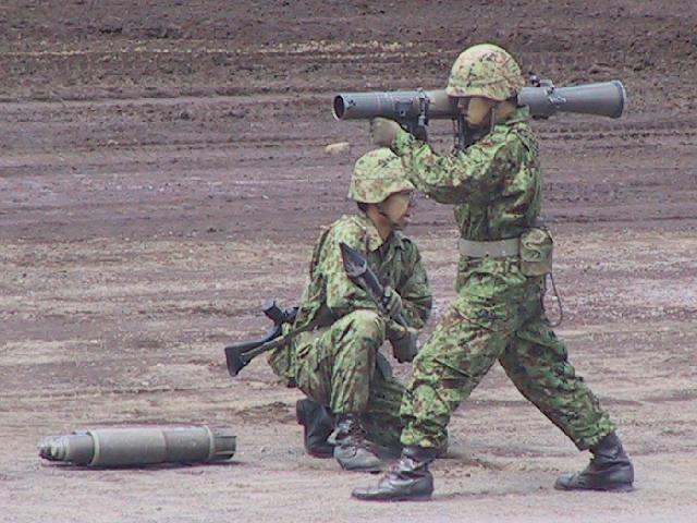 在陆上自卫队,通常每个步兵班配1门84mm无后坐力炮,炮手携带的自卫武器是9mm手枪,而弹药手则携带步枪。
