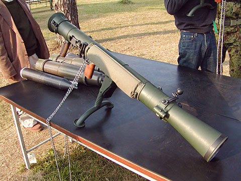 丰和工业生产的84mm无后坐力炮,可以看到炮口增加了一种喇叭形护筒
