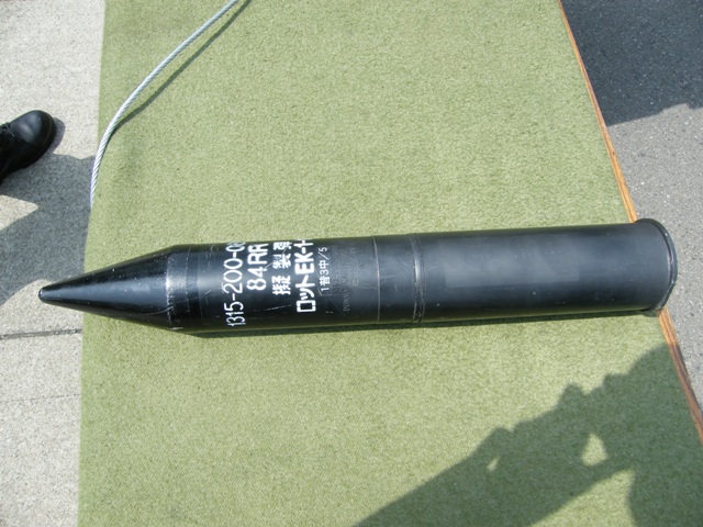 在自卫队基地开发日上这具84mm无后坐力炮的炮口护筒变形了,但实际并不影响使用