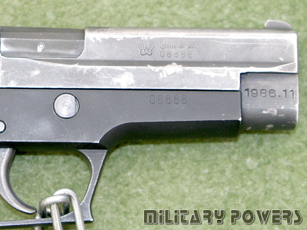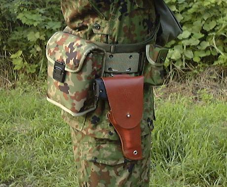 9mm手枪套筒右侧有9mm拳銃和樱花及W字样的陆上自卫队标记,说明这把是陆自的财产![]() |