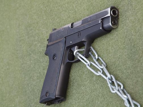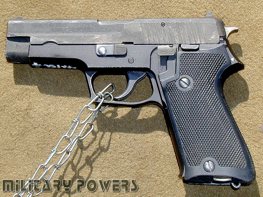 9mm手枪是陆海空3支自卫队所广泛使用的装备,目前仍在缓慢地生产和部署。9mm手枪的套筒并没有像原版那样刻有P220的型号,但左侧刻有“授权自SIG SAUER”的英文(LICENCE SIG-SAUER),右侧用日文刻有“9mm手枪”和各自卫队的标志,陆上自卫队是樱花中间有一个字母“W”,海上自卫队是在锚的中间有一朵樱花,而航空自卫队则是樱花两侧有羽翼。