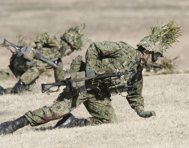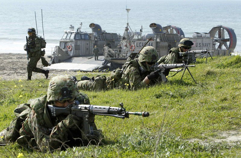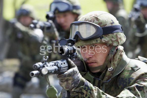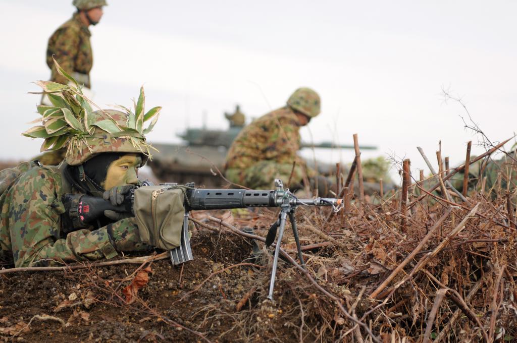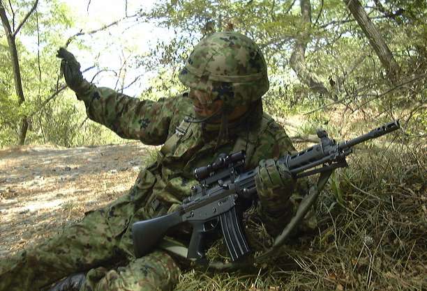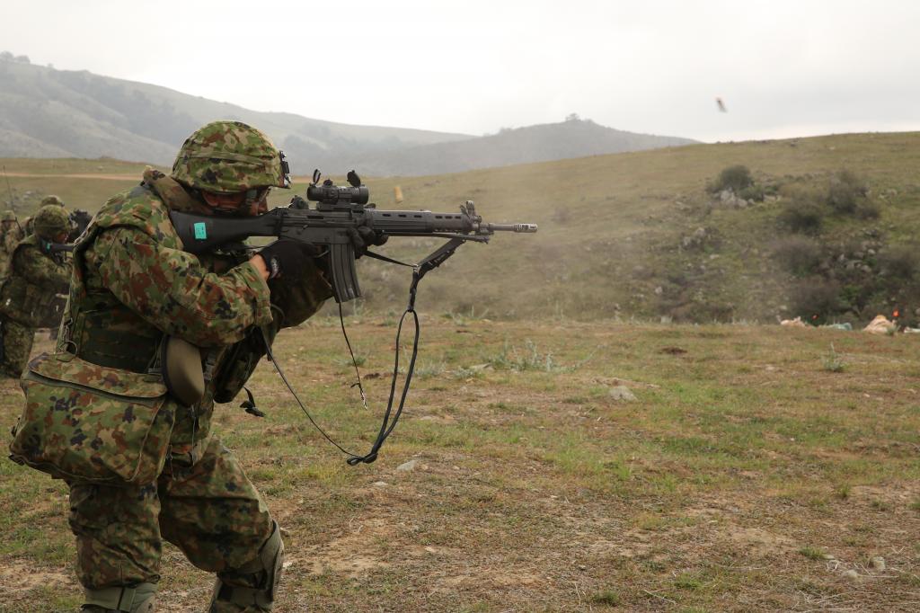 2014年在美国加州彭德尔顿步兵营参加联合演练的日本自卫官,在89式上安装红点镜