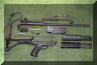 折叠枪托通过按下在枪托连接处的按钮来打开开关进行折叠,折叠方向在左侧,折叠后不影响机匣右侧的快慢机的操作。枪托铰链部位有自补偿锁扣,即使长时间使用产生磨损也不会使得枪托与机匣的连接变得松动。早期的折叠枪托只在骨架式枪托框架内靠近肩托的位置有一个背带环,而后期型则在枪托右侧基部增设了一个背带环。