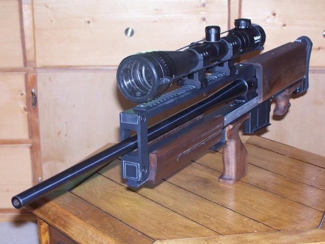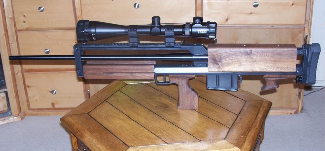 一个署名Benjamin的网友发信给TheFirearmsBlog,展示他用M1500改装的无托枪,铝合金框架和胡桃木护木、握把、贴腮都是他自己动手做的,其他部件是购买现成产品