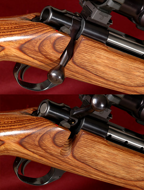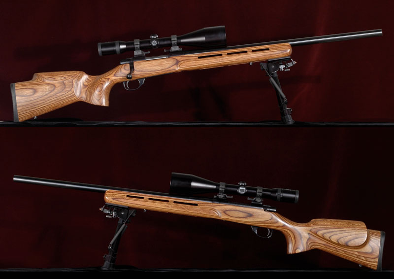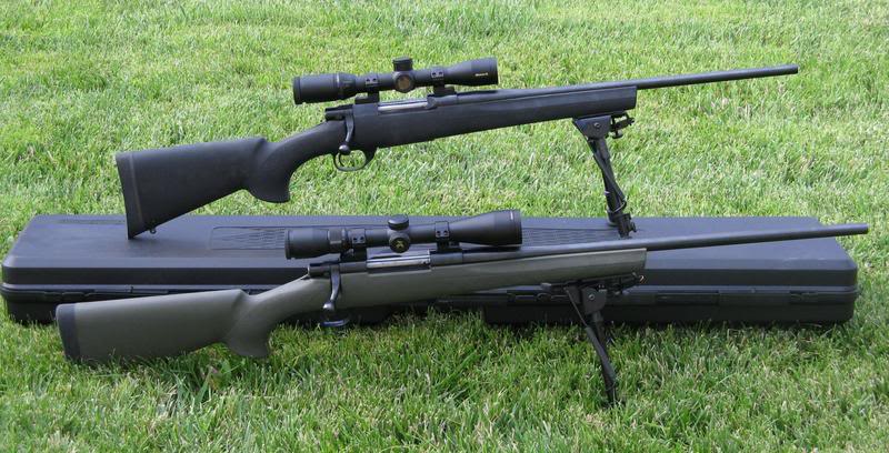 安装纤维枪托的M1500,上面是.308口径,下面是.30-06口径