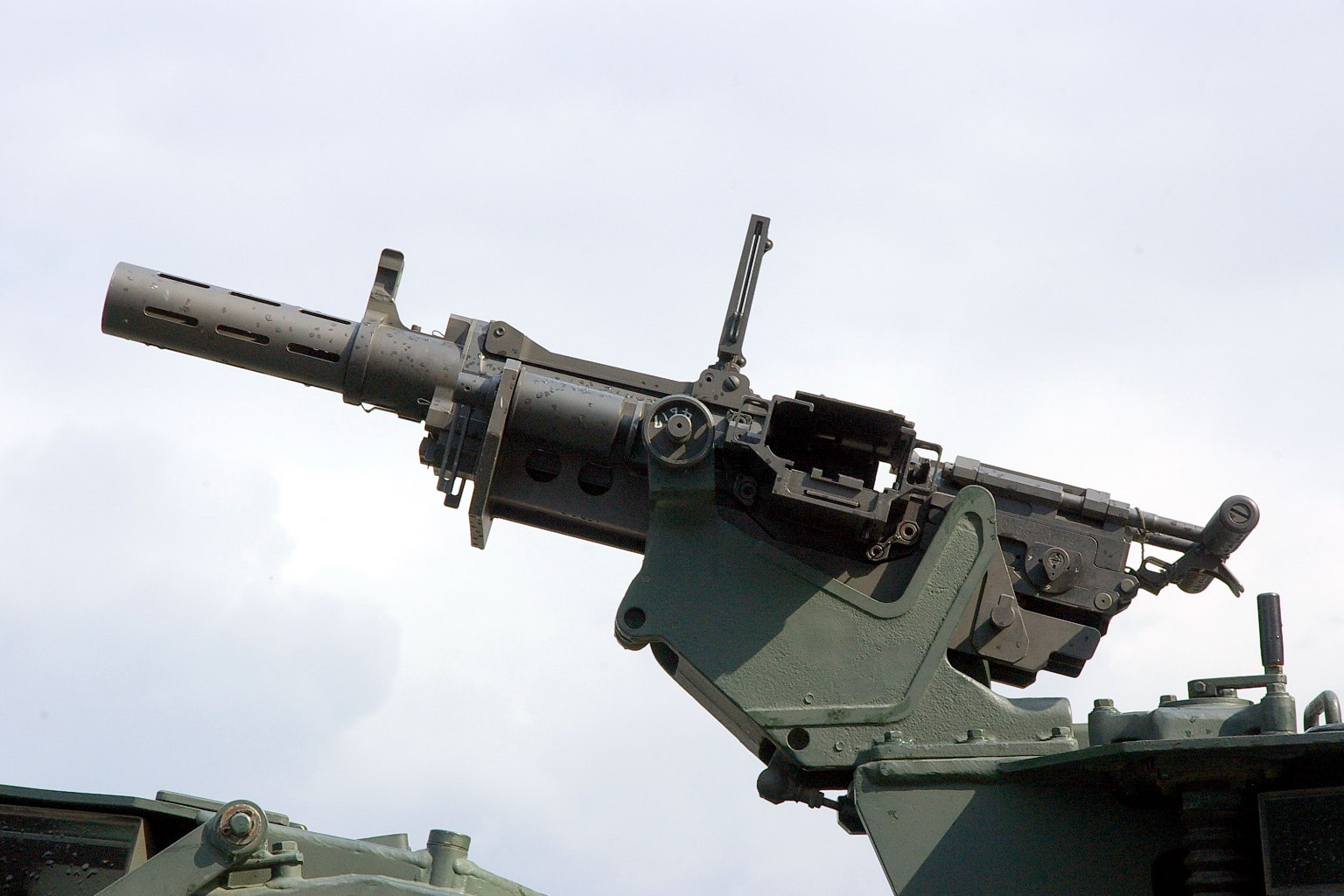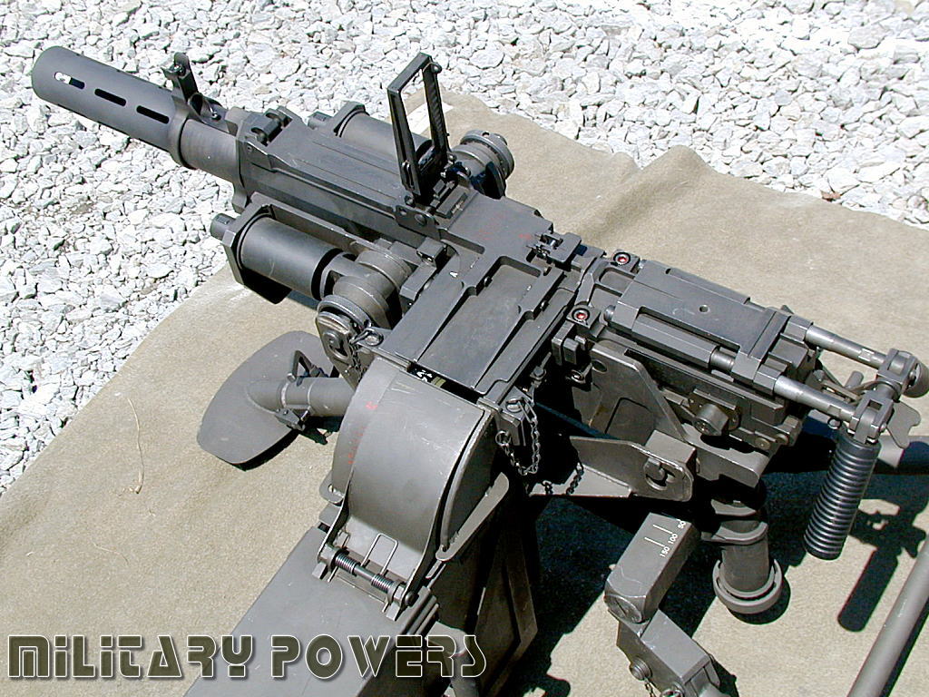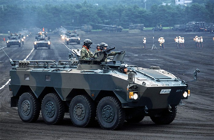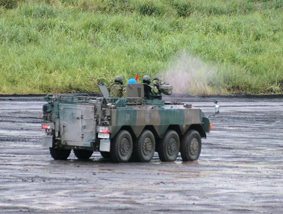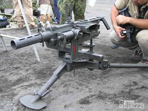由于看到美军装备的Mk19自动榴弹发射器在实战中对步兵提供面毁伤支援的能力,日本陆上自卫队也决定研发和装备类似的武器。于是丰和工业自行研制和生产了96式自动榴弹发射器(96式40mm自動てき(擲)弾銃),并从1996年开始陆续装备陆上自卫队,与M2HB机枪一同成为96式轮式装甲车的车载武装之一。不过在必要时,还可以安装M2HB机枪的三脚架而架设在地面上使用。96式自动榴弹发射器主要装备普通科(步兵)部队的车辆,而M2HB机枪则装备机甲科(装甲兵)以及中央即应集团(中央快速反应部队)的车辆。