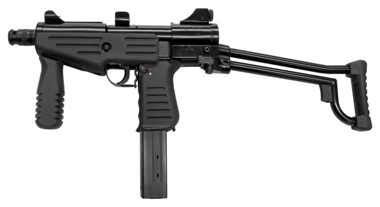 枪托折叠、安装前握把的标准型“眼镜蛇”冲锋枪