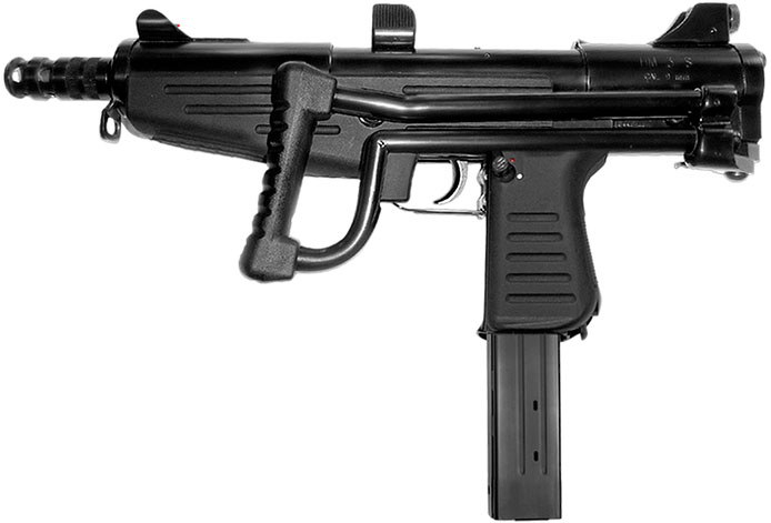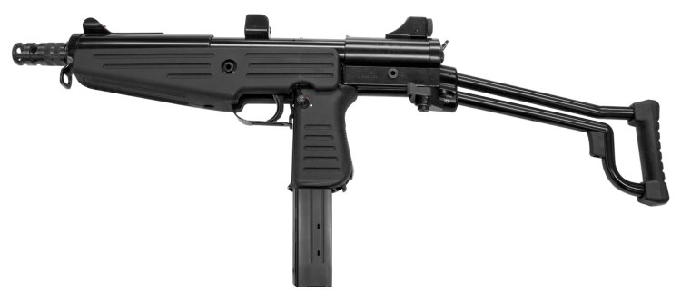 枪托展开、拆卸前握把后的标准型“眼镜蛇”冲锋枪