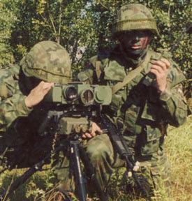 Vector IV-Binocular Laser Range Finder(无线电导引合成望远镜激光指示器探测器)是一种反狙击手探测装置。图中在VIPER下面放的是PLGR GPS和AN/PVS-14