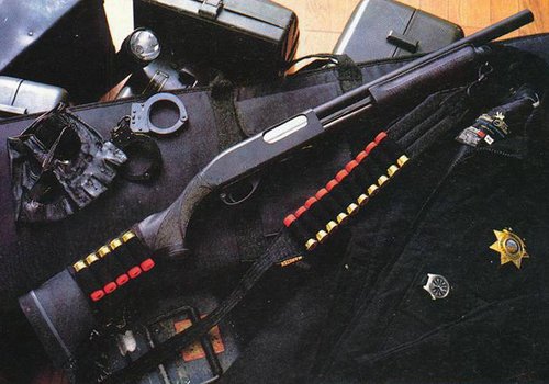 “霰弹枪枪枪不落空”这是一个警察老教官的评价。美国大型警察局的巡逻车里大都装备一支霰弹枪。在好莱坞的电影里,警察遇到恶性案件时,都是潇洒地拔出手枪冲进现场,而现实当中,遇到这种情况警察第一个动作就是从座位中间抽出霰弹枪。对于使用手枪的人来说,遇到霰弹枪对手,只要不是在极为近的距离中,差不多是死定了。
