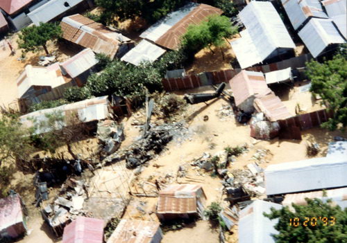 1993年10月3日当日的照片,Durant驾驶着“超级64”在摩加迪沙上空
