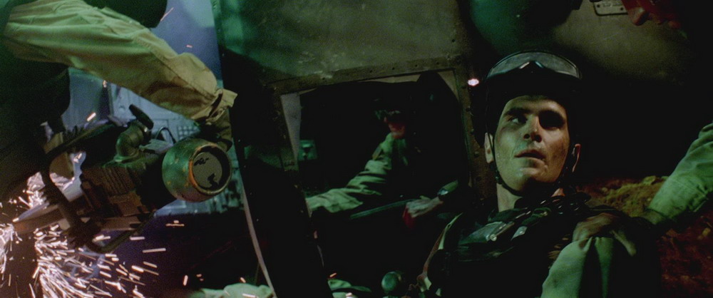 〖电影截图〗 直升机上的装甲板为抢出尸体带来麻烦,因此救援部队不得不在现场逗留至天亮
