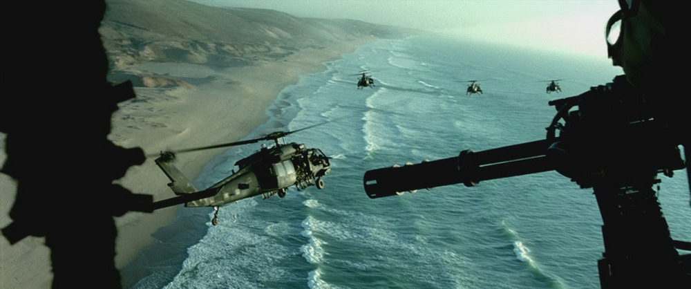 为了迷惑索马里人,直升机群起飞后先是沿着海边飞行,然后才突然转向目标建筑。