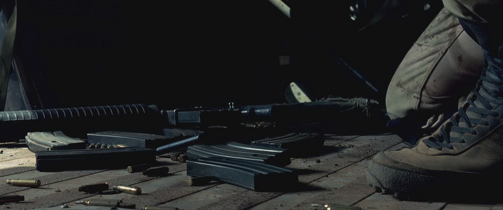 〖电影截图〗 原著中提到,在防守“超级64”的战斗中,两名三角洲队员弹尽粮绝,然后在杜兰特的指示下,翻出了两把机组人员用来自卫的M16继续战斗