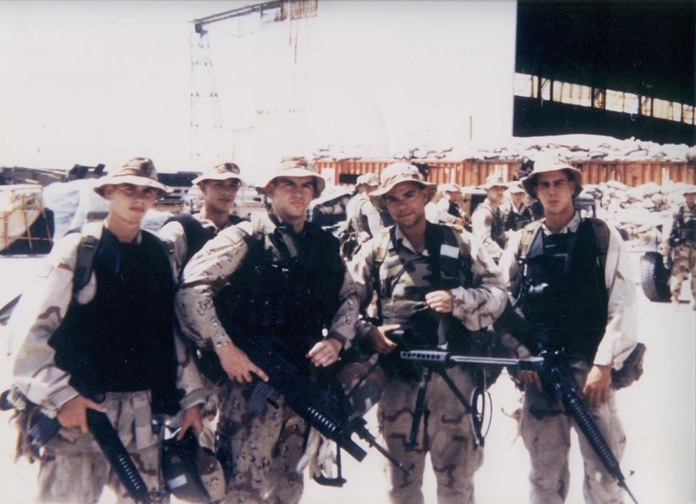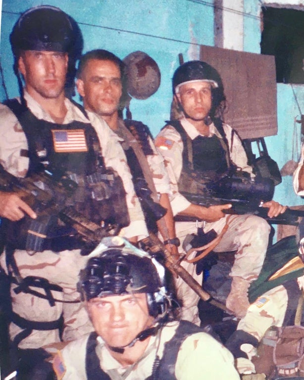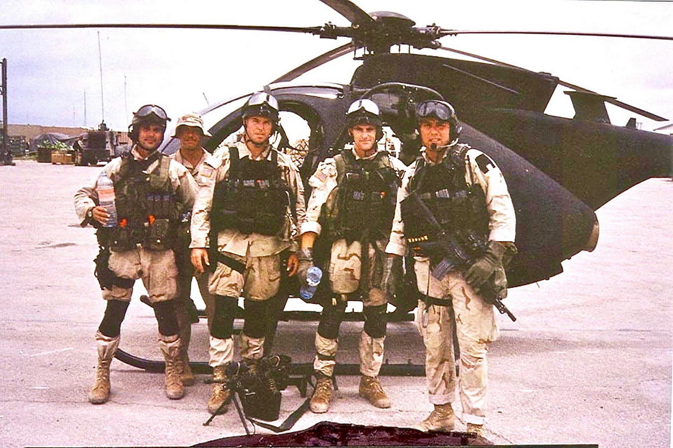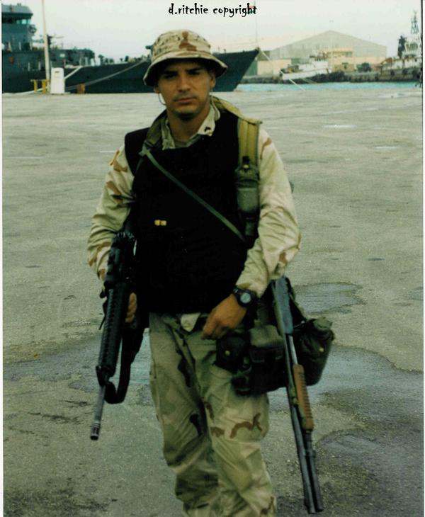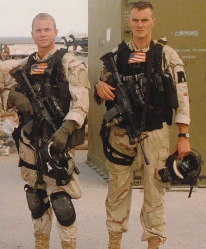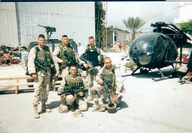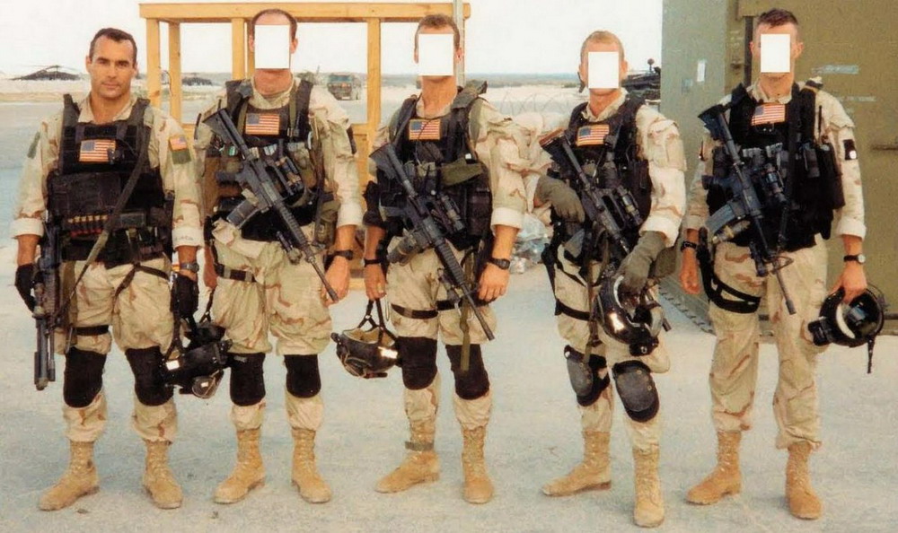 桑德森原型保罗·贺威(照片中唯一没打码的人)在哥特蛇行动时的照片,他是把霰弹枪挂在M723的枪管下方,玩过《三角洲特种部队》系列的玩家可能会记得这把Masterkey吧