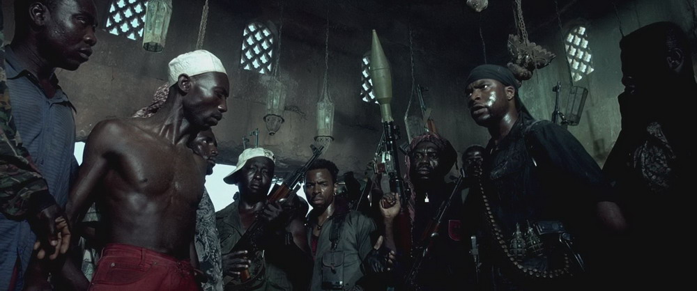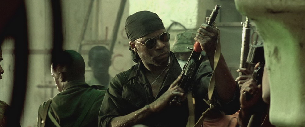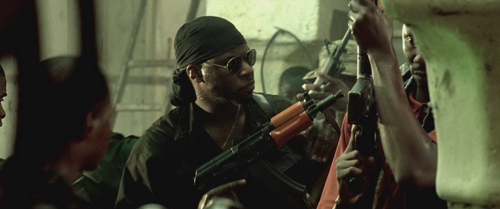 与其他战乱国家一样,AK步枪是索马里交战各方的主要武器,电影中也出现了大量的AKM(绝大多数是折叠托的AKMS),不过细心的观众会发现这部电影中的AKM都是中国生产的冲压机匣型56式冲锋枪(绝大多数是折叠托的56-1式)。中国在1970年代未曾给索马里供应苏式武器,虽然也有其他国家的AK,但剧组只使用56冲,是因为合作的这家道具公司有大量的56-1冲锋枪的道具枪,所以图省事不再找其他款式的AK道具枪吧。何况大多数观众都只知道这是一把AK而矣。