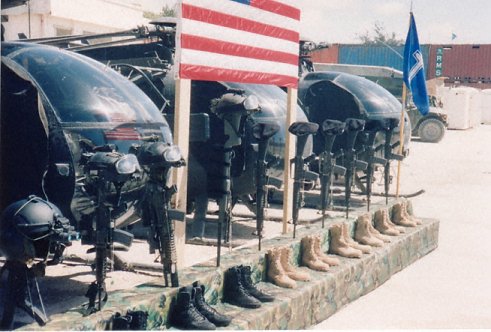 【历史照片】当时在摩加迪沙举行的追悼仪式时的照片,可能当时还没有找回舒加特使用的M21或M14,所以用一把狙击步枪代替