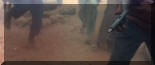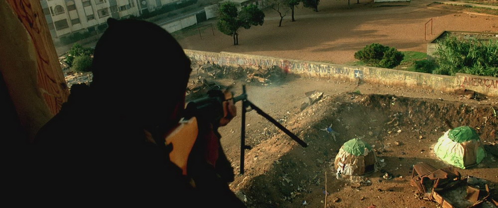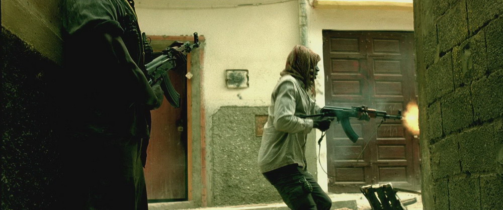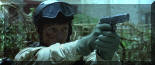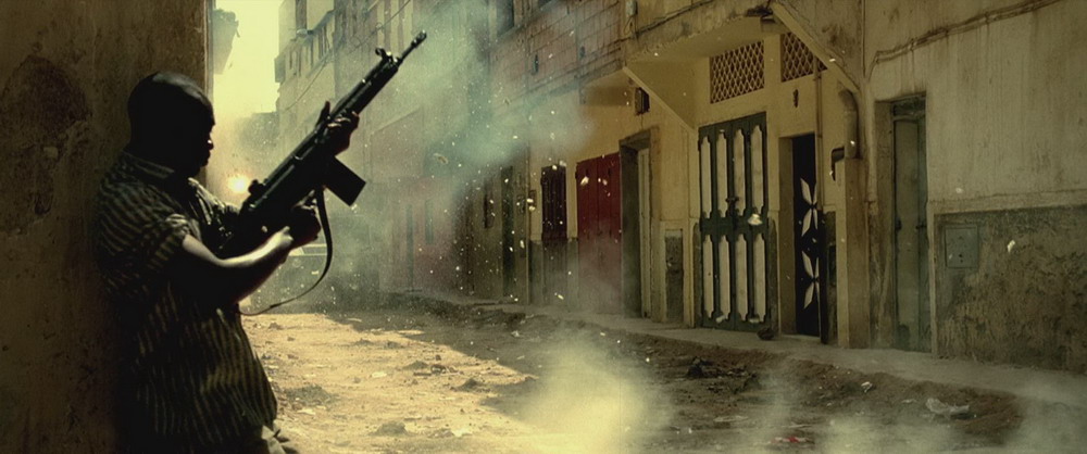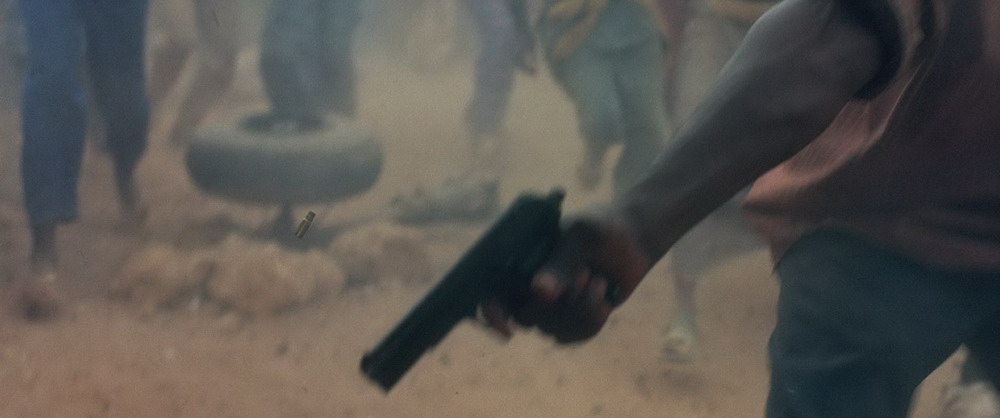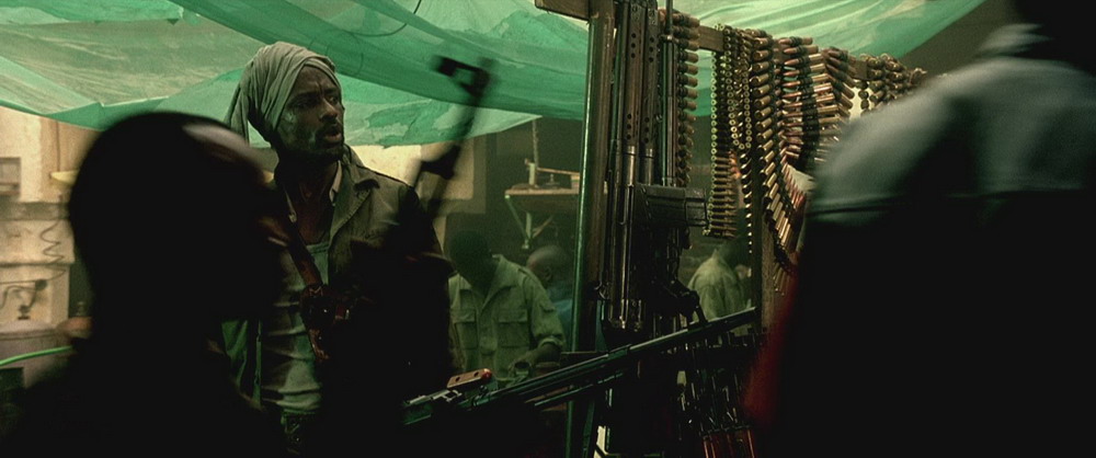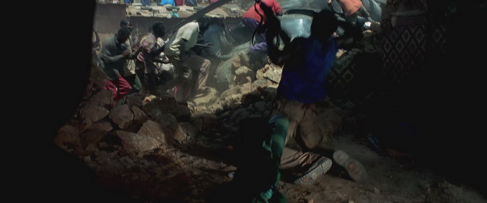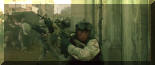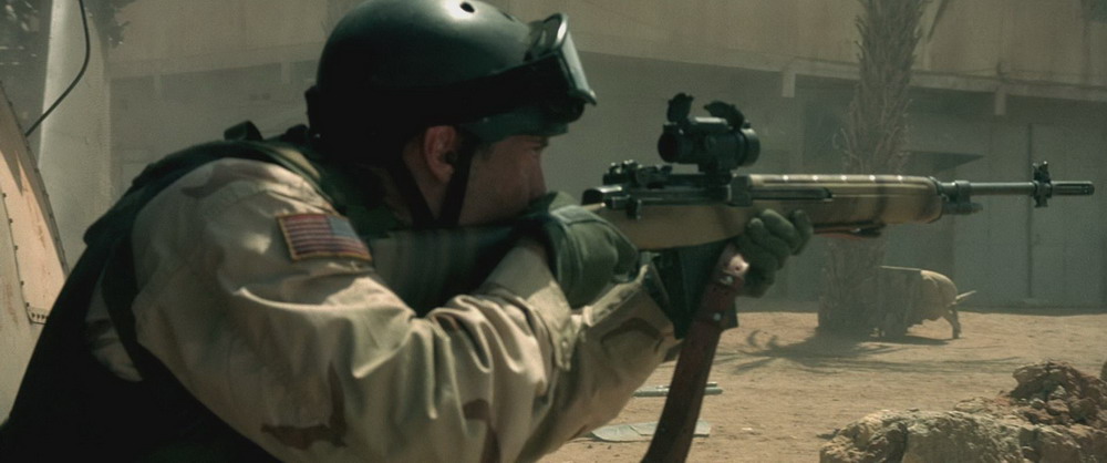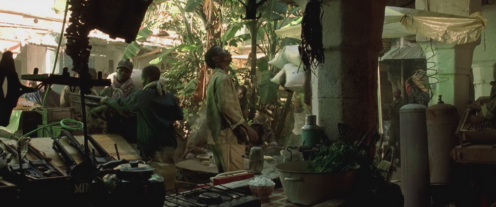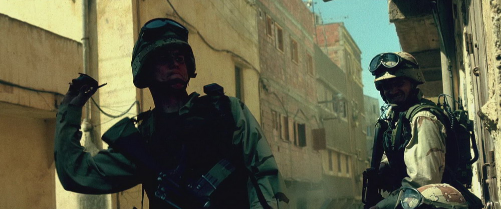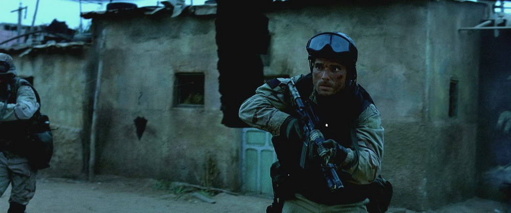 在下面这个镜头中,这个索马里民兵被M16A2击中后还能拖着AK逃跑,其实在前面的情节中有一个被剪掉的镜头为此埋下了伏笔:三角洲队员贺维往弹匣里装涂有绿色标记的子弹时(M855普通弹的弹尖标记),舒加特说索马里人不穿防弹衣,这种弹头会直接穿过去,要几发子弹才能射杀一个目标。事实上事后就有参战美军报告M855弹的杀伤力不足,有些时候要打中4、5发子弹才能使一个敌人失去战斗能力。电影中就有这样一个场景。