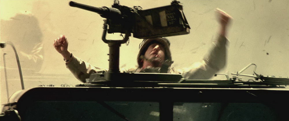 M2HB是美军车队的重要火力,士兵们称之为“50枪”,这种.50BMG口径的武器威力强大,安装在HUMMV车顶使车队能横扫一切挡道的敌人。不过由于HUMMV的车体只是用铝合金制成,虽然结构很结实,但却没有防弹能力,因此车队在来自四面八方群众武装乱枪扫射下而伤亡惨重,而在车顶上无遮无掩的50枪手则更惨。事后美军吸收了索马里的教训,才研制了防弹的装甲型HUMMV——M1114。
