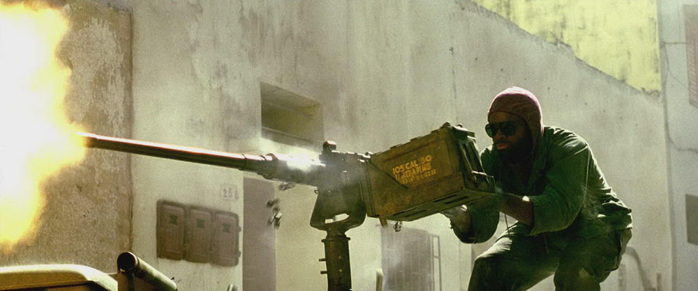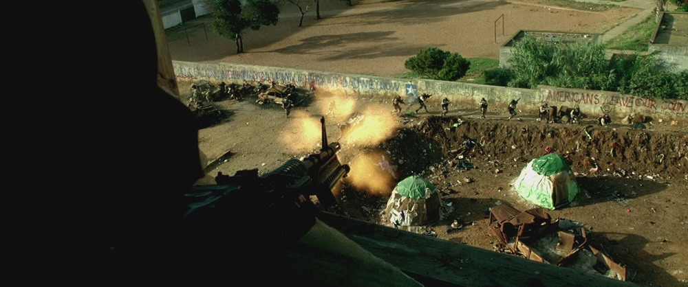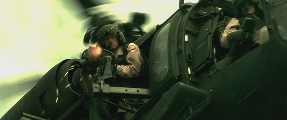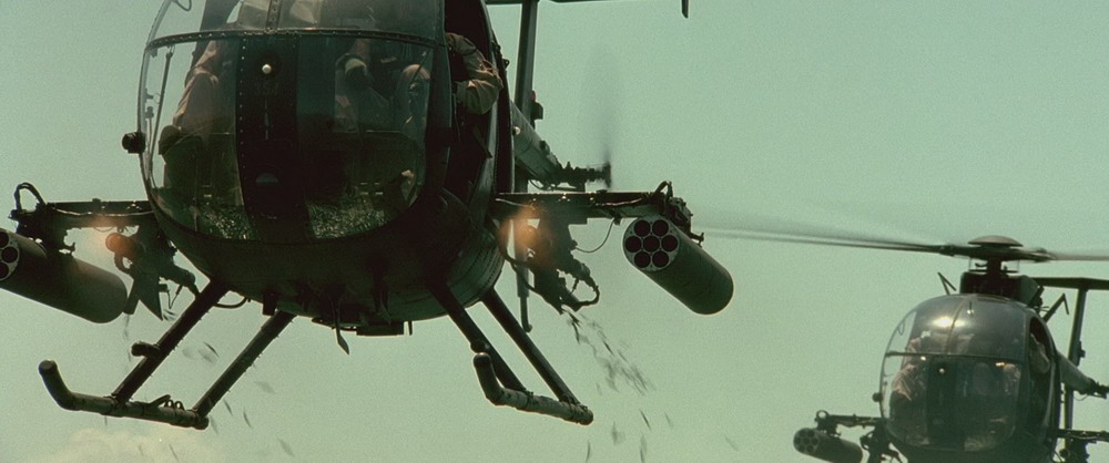 不管是电影还是当时的事实,“小鸟”和“黑鹰”上的M134都为地面提供了强大的火力支援。“黑鹰”在很多电影上都出现过,而AH-6和MH-6这两种“夜间猎人”的独家装备则是第一次在电影上露面。电影中M134的火力令人印象深刻,事实上很多增援的索马里武装就是在半途上被M134的弹雨所截杀,大大减轻了地面美军的压力。