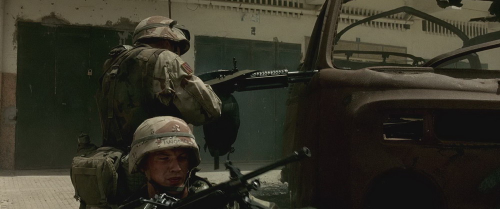其实电影中的美军车队还少了一样重要的武器,在包括原著在内的资料中都有提及到Mk19自动榴弹发射器,当时的美军车队多次被索马里民兵和平民组成的人堆挡在路中,就是全靠M2HB和Mk19的夹击火力在人堆中撕开一个个出口才得以逃生,但如果将这种血腥场面照搬上银幕,恐怕会有损“世界警察”的光辉形象吧,估计就是出于这种原因电影中就少了Mk19这种重要的道具。